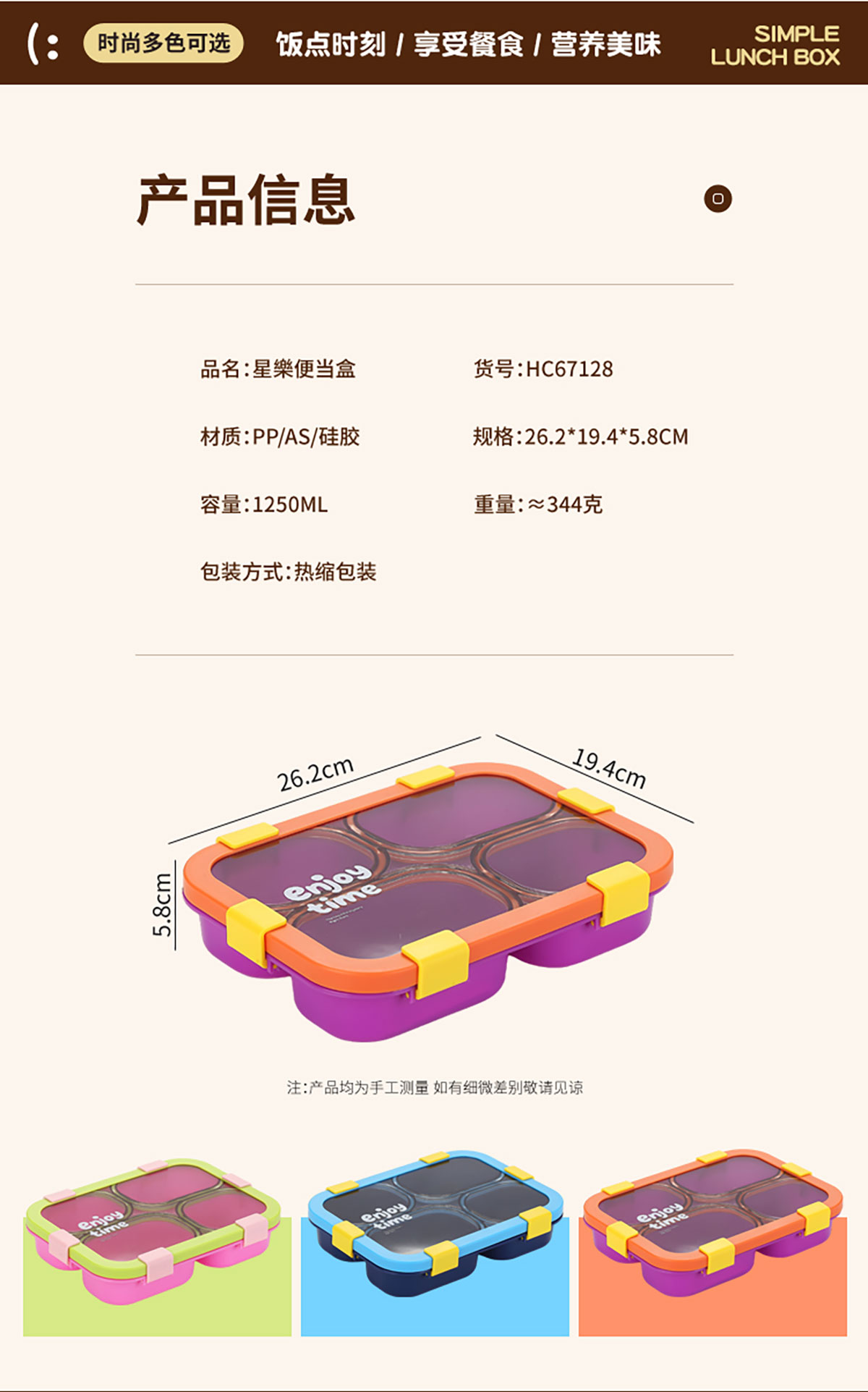 Size: 262*194*58mm/1250ml